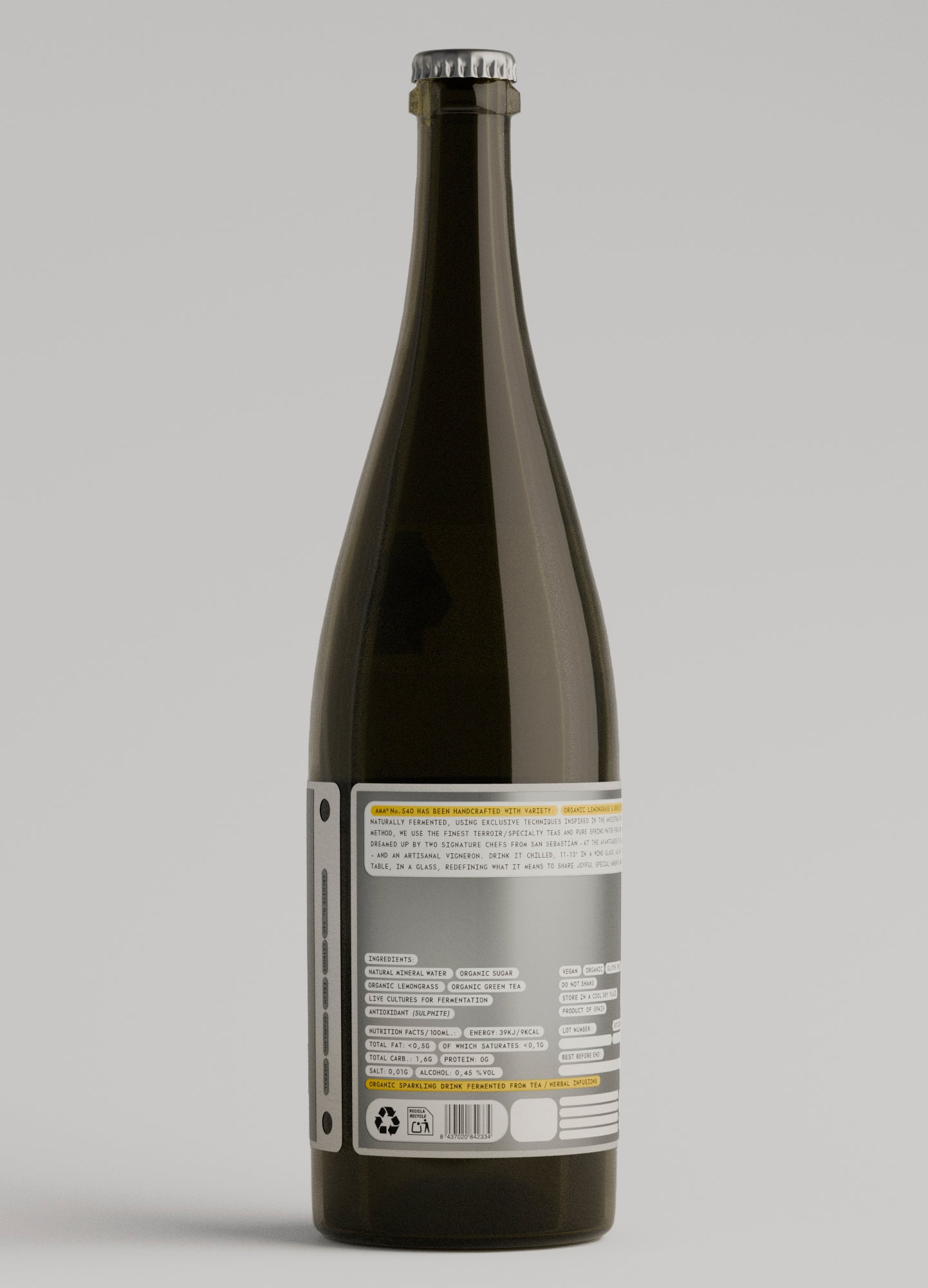 Naturally fermented, using exclusive techniques inspired in the ancestral -pétillant naturel- method, we use the finest terroir / specialty teas and herbs sourced from small scale family farms and pure spring water from the Basque country. Drink it chilled, 9-11º in a wine glass. As an aperitif, at the table, in a glass, redefining what it means to share joyful special moments and drink well.